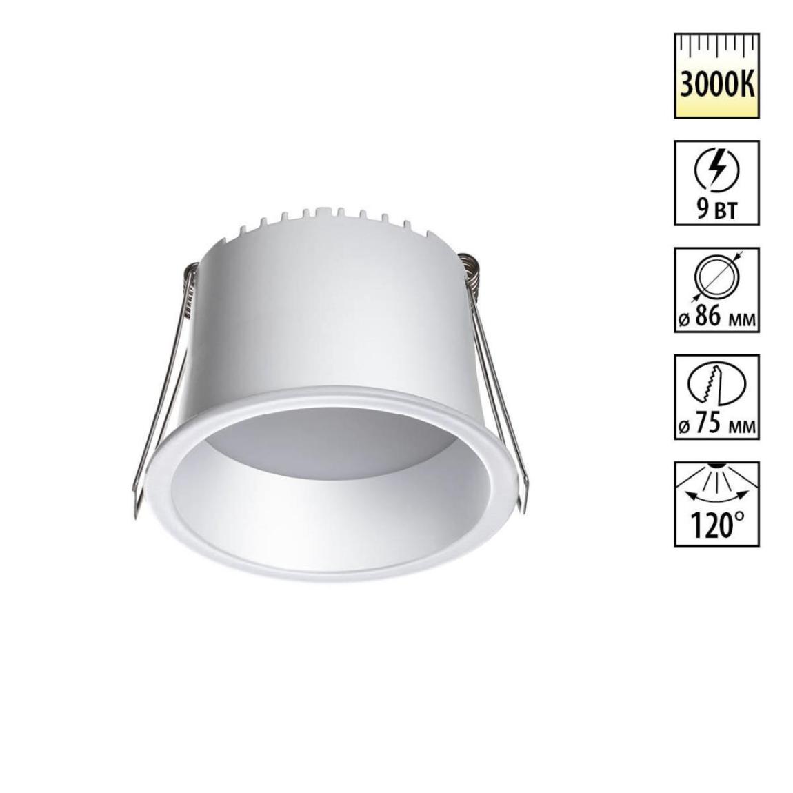 359234 SPOT NT23 536 белый Светильник встраиваемый светодиодный IP20 LED 9W 220V 540Лм 3000К TRAN