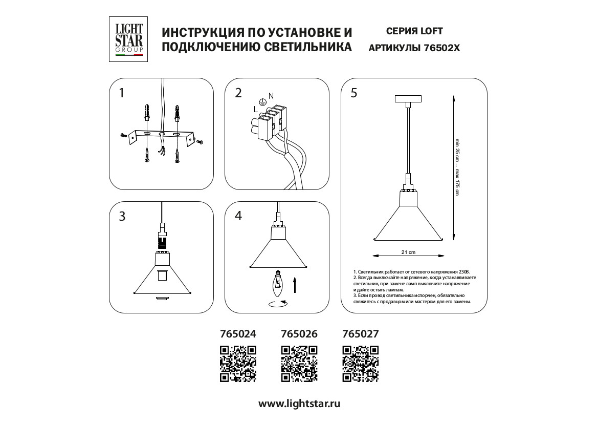 Светильник Высота без цепи, мм 250