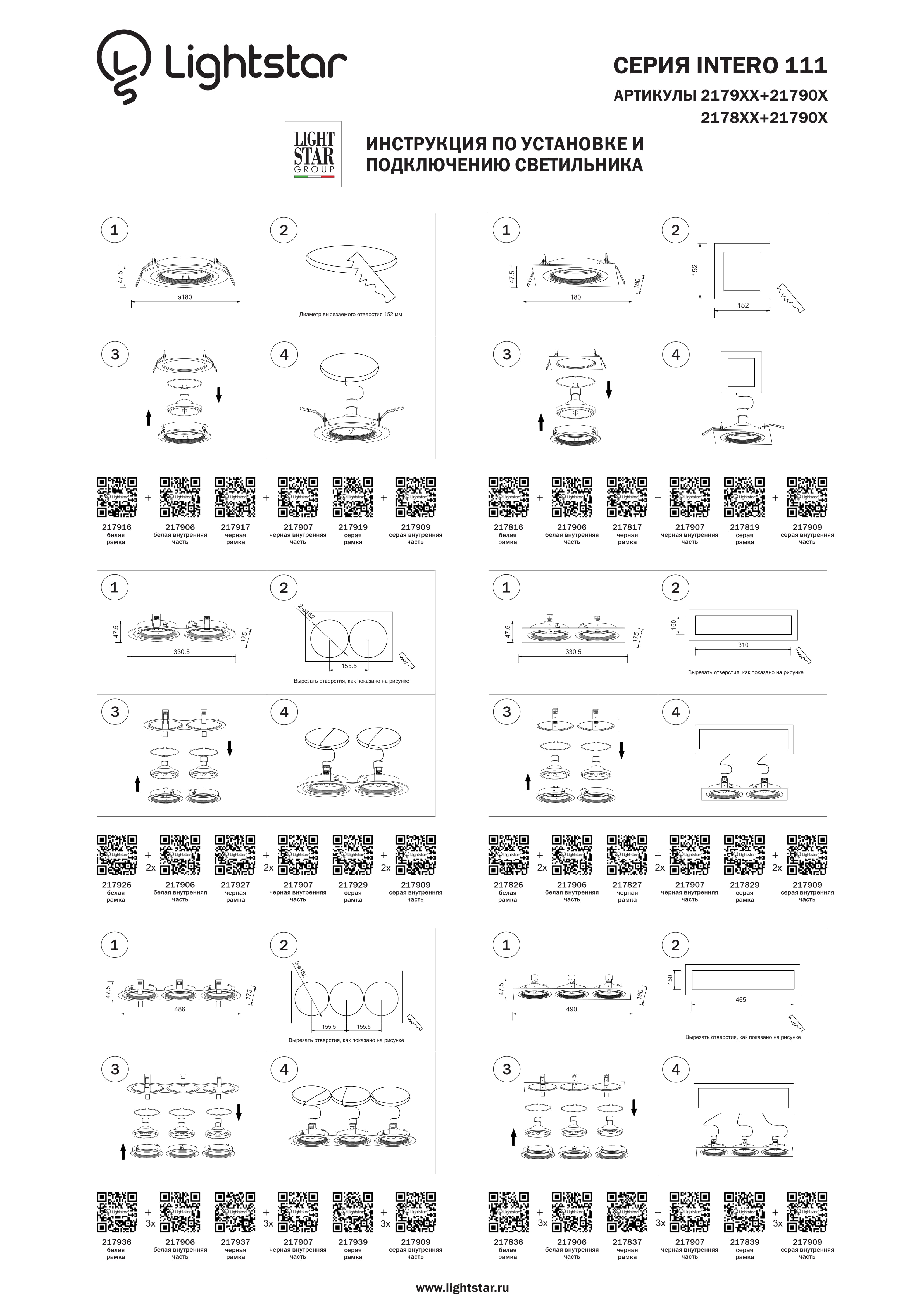 Светильник точечный встраиваемый декоративный под заменяемые галогенные или LED лампы Intero 111 Lightstar 217906